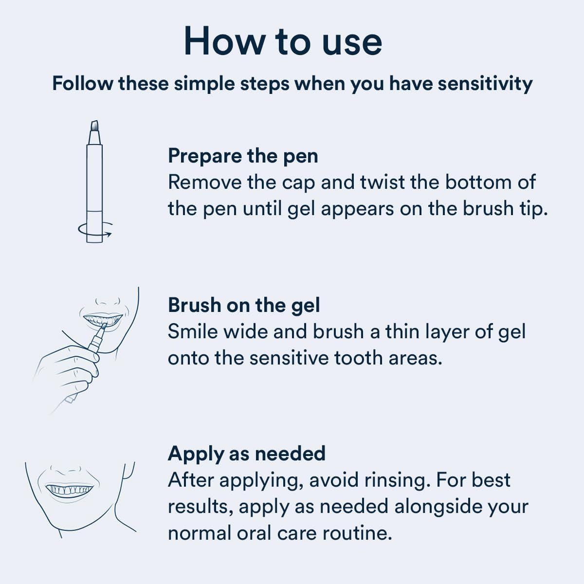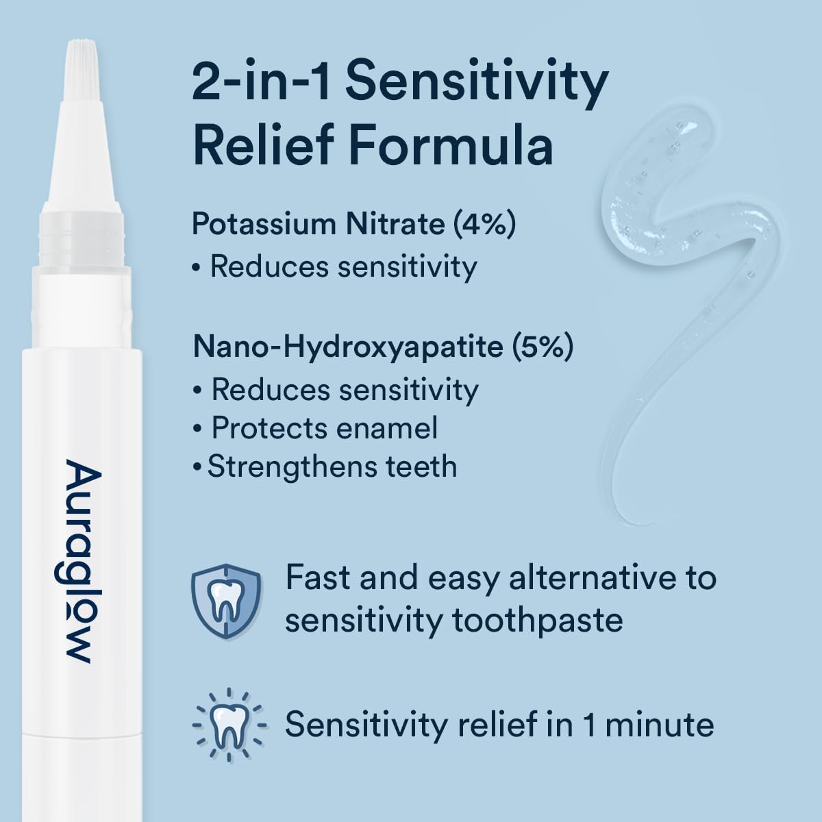 The Auraglow sensitivity relief serum is designed to reduce tooth sensitivity without the need for sensitive toothpaste. This pen is easy to paint onto the teeth to reduce sensitivity in under 1 minute.