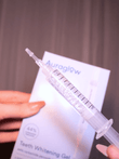 2. Apply a small line of gel to the inner front surface of a dental whitening tray or LED light (not included).