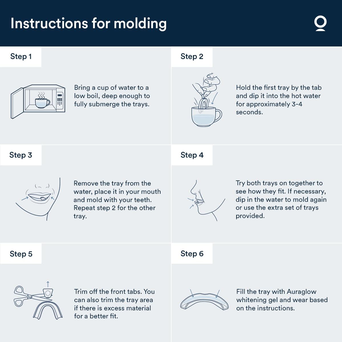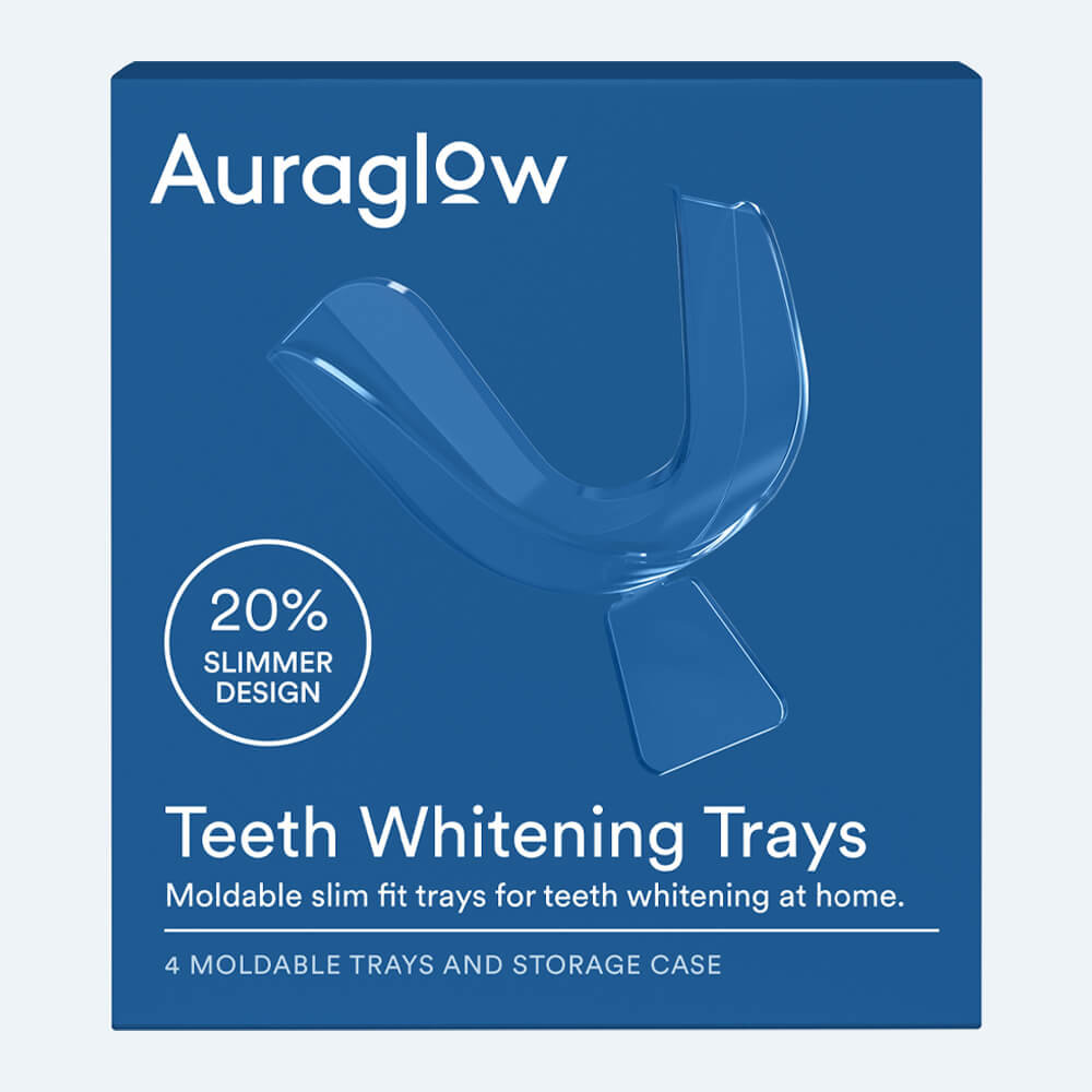 Auraglow thermoform moldable trays are perfect for teeth whitening at home. These trays can be dipped in hot water and molded to your teeth to make an impression for dental teeth whitening at home.